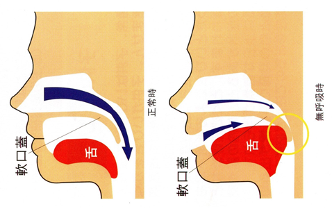 左:正常の舌の位置 右:無呼吸時の舌の位置