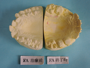 下の写真のように咬み合わせの力が弱い幼少期の反対咬合は、咬むための力を主に筋力に頼っているので治療の効果が一目瞭然に確認することができます。