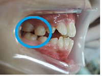 この乳臼歯は将来永久歯と交換する歯のために、一時的に乳臼歯を矯正装置として利用します。