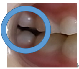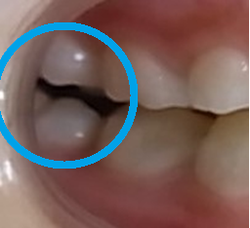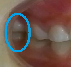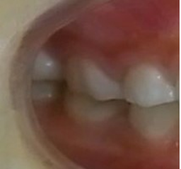 乳臼歯にレジンを盛る事で第一大臼歯の咬み合わせに隙間が出来ました。