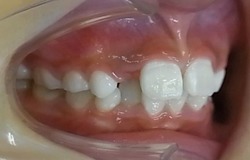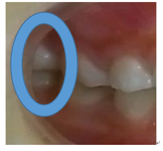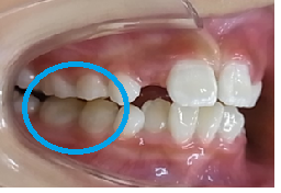 こどもの時期の乳臼歯と第一大臼歯の咬み合わせ。(咬み合わせが低い)