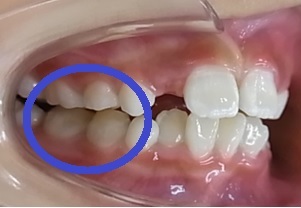 ☆こどもの時期の乳臼歯と第一大臼歯の咬み合わせ(咬み合わせが低い)