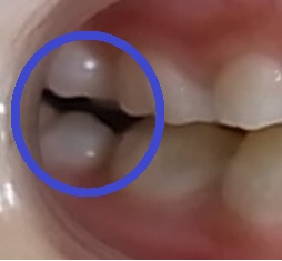 乳臼歯にレジンを盛る事で第一大臼歯の咬み合わせに隙間が出来ました。