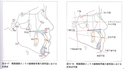 セファログラムを分析するために多くの分析法が発表されており、さまざまな計測項目を用いて、顎顔面頭蓋の形態的特徴が評価されています。