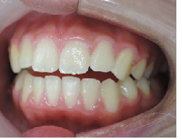 当矯正歯科医院では上顎の乳臼歯にレジンを盛る事で、クロスした前歯の被蓋(前歯の咬み合わせ)を改善していきます。