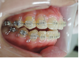 上顎の歯が揃ってから、下額に矯正装置(ブラケット)を装着します。