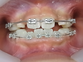 拡大には歯にブラケットと言う矯正装置を貼り付けてワイヤーを使って拡大していきます。