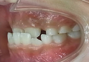 約2か月ほどで隙間が埋まり第一大臼歯が咬み合いました。