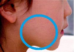 この部分の筋肉を過分に緊張させて受け口の下顎の位置を保っています。