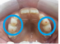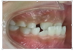 こどもの時期の乳臼歯と第一大臼歯の咬み合わせ。(咬み合わせが低い)
