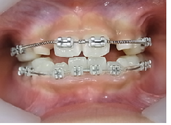 拡大には歯にブラケットと言う矯正装置を貼り付けてワイヤーを使って拡大していきます。